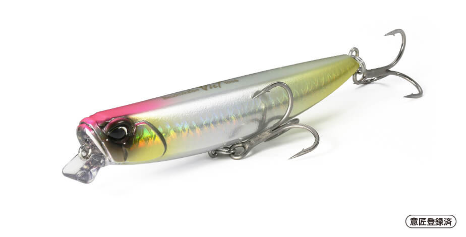 Slim body makes longer cast distance, and lipped body has wide wobbling action.